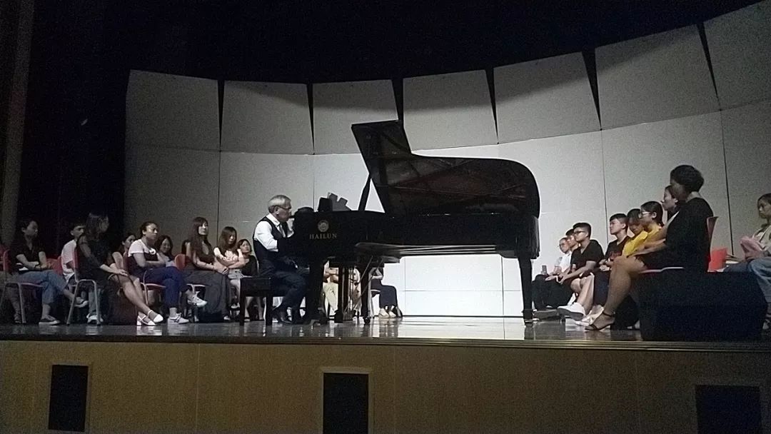 為了便于和學習鋼琴的學生溝通互動,趙曉生教授特別安排了一些學生登臺近距離觀看他的鋼琴演奏。這樣貼心的安排,讓有幸登臺的學生們興奮不已,趙曉生教授不拘一格的演出臺風讓大家既感溫馨又深感欽佩。