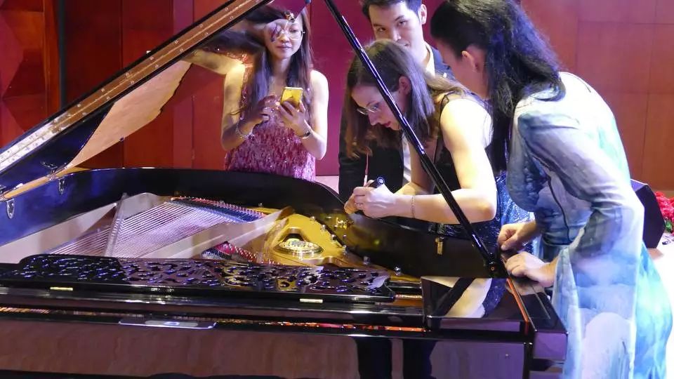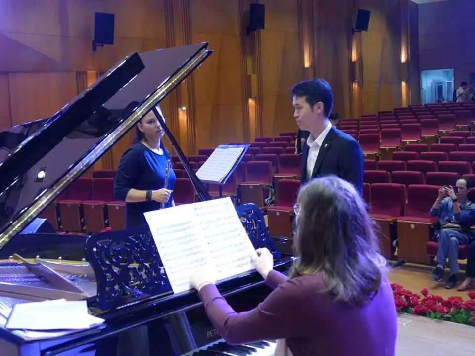 為了準(zhǔn)備這次巡演音樂會(huì)的收官演出,巡演演出經(jīng)驗(yàn)豐富的鋼琴家亞娜·喬赫里和長笛演奏家艾妮斯卡·貝斯契索娃雖然經(jīng)過舟車勞頓的辛苦,卻是一到演出地點(diǎn)就馬上熟悉演出環(huán)境并十分認(rèn)真地排練起來。兩位藝術(shù)家在準(zhǔn)備演出的同時(shí),還協(xié)助調(diào)音師調(diào)整了一架佩卓夫P194演奏級(jí)鋼琴,同時(shí)還表示,一定要用優(yōu)美的樂聲演出這最后一場(chǎng)。