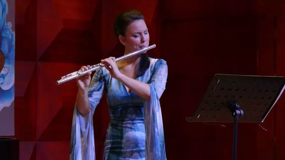 當(dāng)晚演出上半場(chǎng),鋼琴家亞娜·喬赫里一襲黑衣端坐在鋼琴前,身著白衣的長笛演奏家艾妮斯卡·貝斯契索娃手持銀笛,為大家?guī)砭识指哐诺难葑唷晌凰囆g(shù)家所演奏的每一首樂曲,獲得了在場(chǎng)觀眾的熱烈歡迎與好評(píng)。