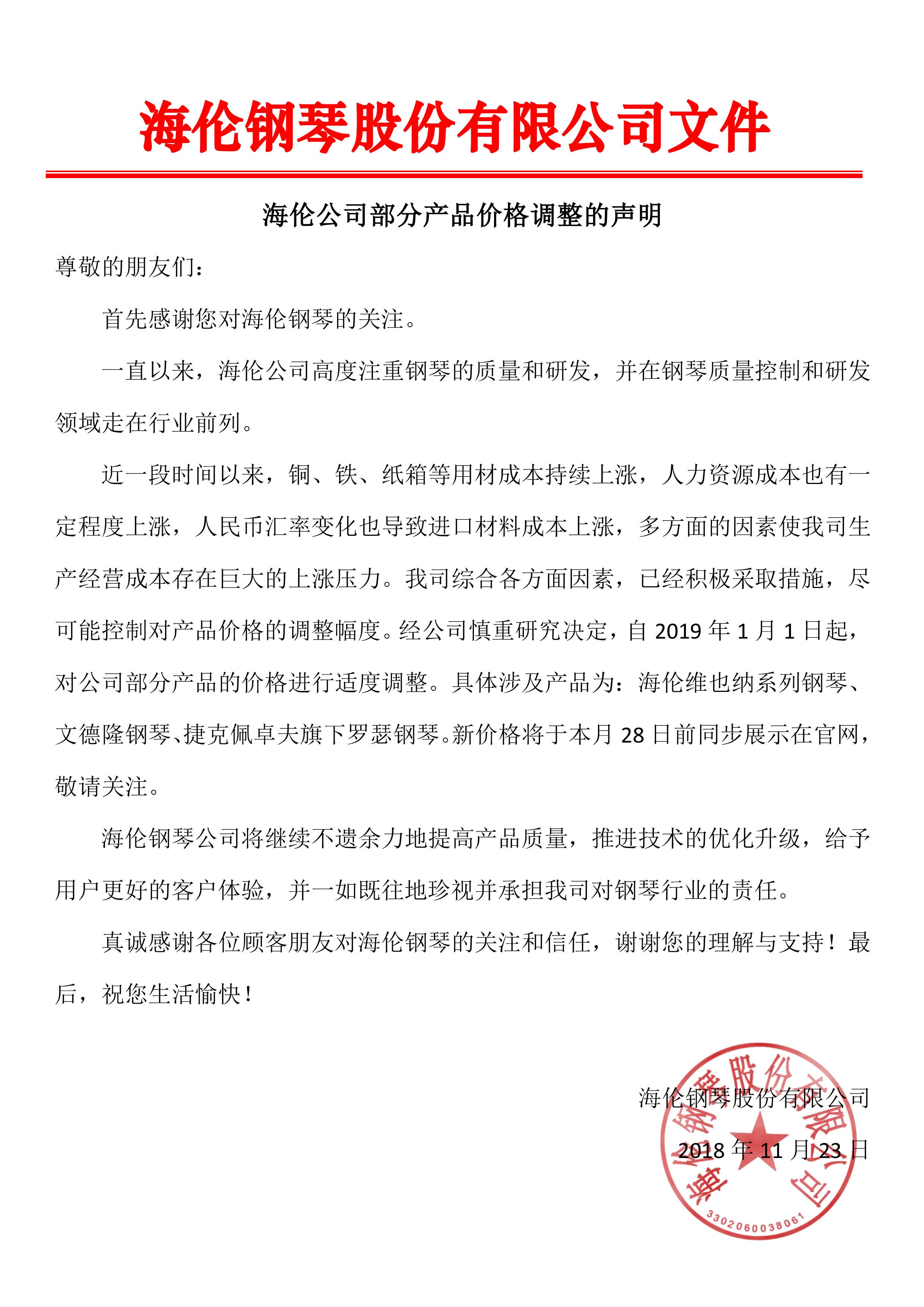 2019海倫公司產品價格調整的聲明01