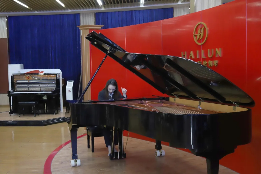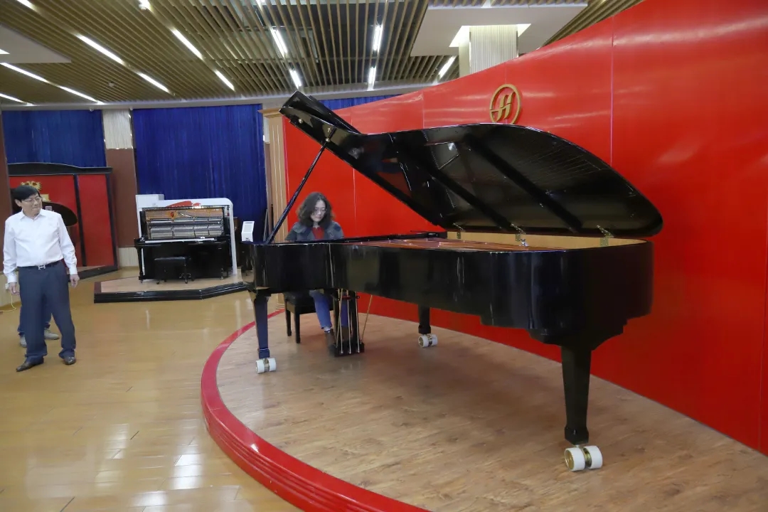 在展示廳里,寧波大學(xué)音樂學(xué)院老師試奏了海倫鋼琴新款的九尺三角鋼琴,美妙的琴聲行云流水般傾瀉而出,飄蕩在整個展示中心,讓眾人陶醉不已,她們對海倫鋼琴出眾的音色和觸鍵反應(yīng)贊不絕口。