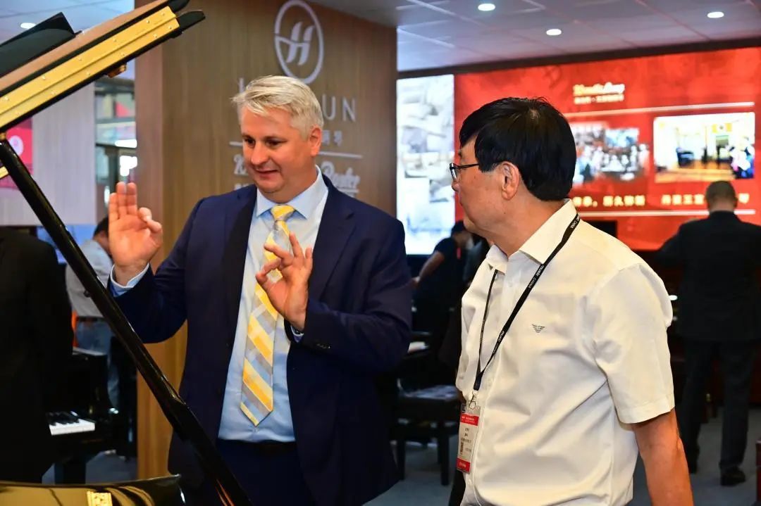 展會(huì)吸引了中國(guó)輕工業(yè)聯(lián)合會(huì)會(huì)長(zhǎng)張崇和;中國(guó)輕工業(yè)聯(lián)合會(huì)黨委副書記、中國(guó)樂(lè)器協(xié)會(huì)理事長(zhǎng) 王世成 ;知名鋼琴演奏家李名強(qiáng)教授;中央音樂(lè)學(xué)院教授、海倫鋼琴制造與演藝研發(fā)中心主任楊鳴等領(lǐng)導(dǎo)專家的到訪,陳海倫董事長(zhǎng)陪同參觀,并詳細(xì)介紹了令他為之驕傲的海倫過(guò)硬品質(zhì)和匠心技藝。他總說(shuō)“我的名字是企業(yè)的名字,這個(gè)產(chǎn)品有我自己的信譽(yù)在里面。”陳海倫先生將畢生信譽(yù)和心血都傾注給了海倫鋼琴,這也是領(lǐng)導(dǎo)一行駐足贊嘆的原因之一。