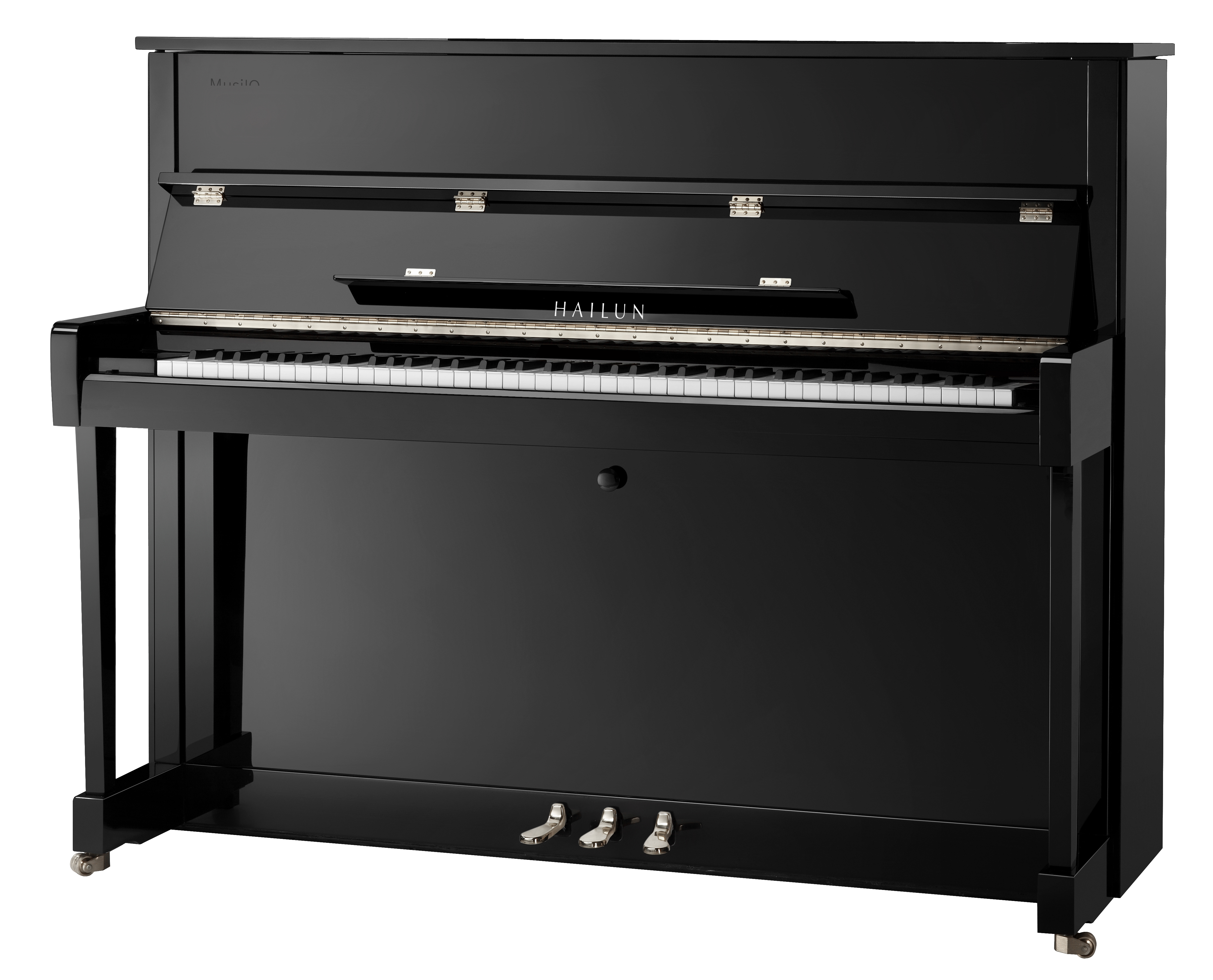 實木鍵盤、純烏木黑鍵、硬楓木弦軸板、弦軸倒牙車絲;